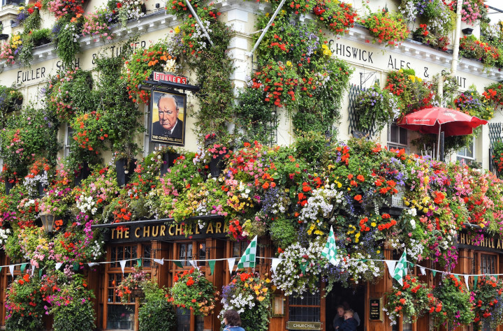 The Churchill Arms i Kensington er en av de pubene mange har sett bilder av før de reiser til London. Fasaden er kjent for blomster og sesongpynt, og stedet er blitt et lite landemerke i seg selv. Dette gjør at det kan bli ganske fullt, men for mange er det likevel verdt turen fordi puben faktisk har mer personlighet enn mange andre kjente steder.